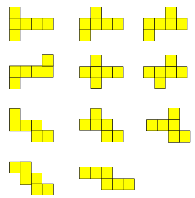 正方体展开图有“1-4-1、1-3-2、2-2-2、3-3”四种类型,一共11种不同的情形.