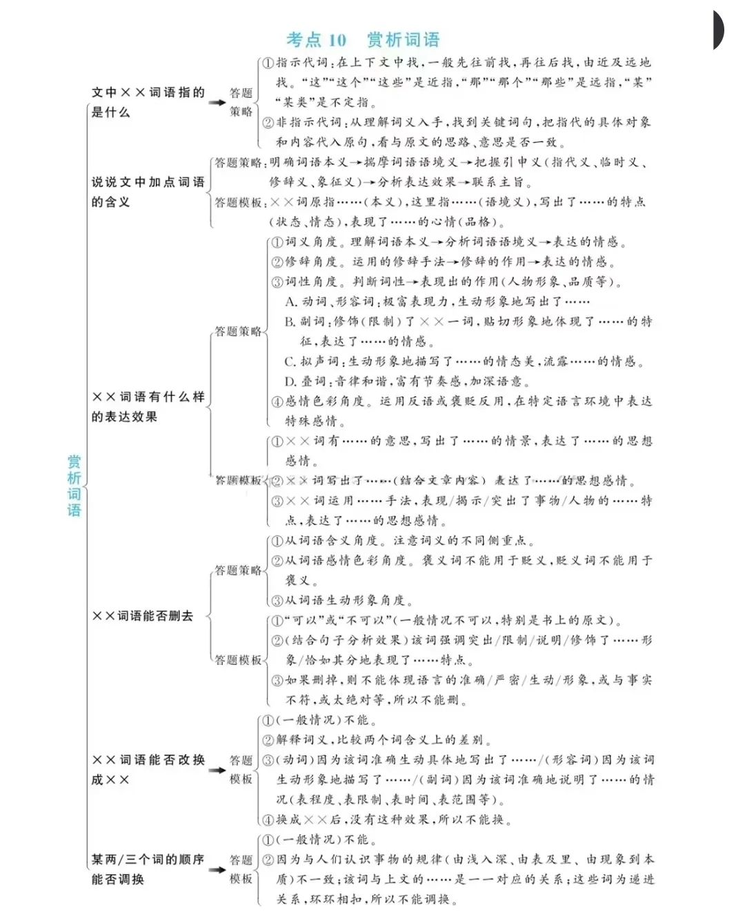 形容词:不行。因为该词生动形象地描写了……副词(如都、大都、非常只有、一般、可能、有时、通常等):不行。因为该词准确地说明了……的情况(表程度、表限制、表时间、表范围等),换了后就变成……与事实不符合。(若是说明文再加上“原词体现了说明文语言的准确性”)