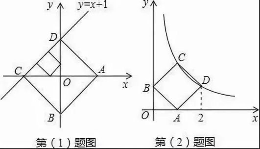 ③菱形的两条对角线互相垂直,并且每一条对角线平分一组对角;④菱形是轴对称图形,每条对角线所在的直线都是它的对称轴;③对角线:互相平分;相等;且垂直;每一条对角线平分一组对角,即正方形的对角线与边的夹角为45度;例1 矩形ABCD中,DE⊥AC于E,且∠ADE:∠EDC=3:2,则∠BDE的度数为 ( )例2 如图,矩形ABCD中,AE⊥BD于点E,对角线AC与BD相交于点O,BE:ED=1:3,AB=6cm,求AC的长。 例3 如图, O是矩形ABCD 对角线的交点, AE平分 ∠BAD,∠AOD=120° ,求∠AEO 的度数。例4 菱形的周长为40cm,两邻角的比为1:2,则较短对角线的长________ 。例5 如图,在正方形ABCD中,G是BC上任意一点,连接AG,DE⊥AG于E,BF∥DE交AG于F,探究线段AF、BF、EF三者之间的数量关系,并说明理由.说明一个四边形是正方形的一般思路是:先判断它是矩形,在判断这个矩形也是菱形;或先判断它是菱形,再判断这个菱形也是矩形。例1. 如图,在△ABC中,AB=AC,点D是边BC的中点,过点A、D分别作BC与AB的平行线,并交于点E,连续EC、AD。例2.如图,△ABC中,∠C=90°,AD平分∠BAC,ED⊥BC,DF//AB. 例3.已知如图,在△ABC,∠ACB=900,AD是角平分线,点E、F分别在AB、AD上,且AE=AC,EF∥BC。例1.如图,在平面直角坐标系中,菱形ABCD的顶点C与原点O重合,点B在y轴的正半轴上,点A在反比例函数y=(k>0,x>0)的图象上,点D的坐标为(4,3).(2)若将菱形ABCD沿x轴正方向平移,当菱形的顶点D落在函数y=(k>0,x>0)的图象上时,求菱形ABCD沿x轴正方向平移的距离。例2.如图,点B、C分别在两条直线y=2x和y=kx上,点A、D是x轴上两点,已知四边形ABCD是正方形,则k值为______. 例3 已知点A、B分别是x轴、y轴上的动点,点C、D是某个函数图象上的点,当四边形ABCD(A、B、C、D各点依次排列)为正方形时,称这个正方形为此函数图象的伴侣正方形.例如:如图,正方形ABCD是一次函数y=x+1图象的其中一个伴侣正方形.(1)若某函数是一次函数y=x+1,求它的图象的所有伴侣正方形的边长;(2)若某函数是反比例函数,它的图象的伴侣正方形为ABCD,点D(2,m)(m<2)在反比例函数图象上,求m的值及反比例函数解析式。 例1 如图,矩形ABCD中,E是AD的中点,将△ABE沿直线BE折叠后得到△GBE,延长BG交CD于点F.若CF=1,FD=2,则BC的长是( )例2 如图,在矩形ABCD中,AB=5,BC=7,点E为BC上一动点,把△ABE沿AE折叠,当点B的对应点B′落在∠ADC的角平分线上时,则点B′到BC的距离为( )例3 如图,在边长为1的正方形ABCD中,E为AD边上一点,连接BE,将△ABE沿BE对折,A点恰好落在对角线BD上的点F处。延长AF,与CD边交于点G,延长FE,与BA的延长线交于点H,则下列说法:①△BFH为等腰直角三角形;②△ADF≌△FHA; ③∠DFG=60°;④DE=2-√2;⑤S△AEF=S△DFG.其中正确的说法有( ) 例4 四边形ABCD是正方形,∠MAN=45°,它的两边AM、AN分别交CB、DC与点M、N,连接MN,作AH⊥MN,垂足为点H。(1)如图1,猜想AH与AB有什么数量关系?并证明。(2)如图2,已知∠BAC=45°,AD⊥BC于点D,且BD=2,CD=3,求AD的长。1.计算。利用矩形、菱形、正方形中的等腰三角形和直角三角形进行计算。2.证明。利用矩形、菱形、正方形的性质和判定,结合全等三角形、等腰三角形、等边三角形的知识展开证明。例1 在数学兴趣小组活动中,小明进行数学探究活动,将边长为2的正方形ABCD与边长为2的正方形AEFG按图1位置放置,AD与AE在同一直线上,AB与AG在同一直线上.(2)如图2,小明将正方形ABCD绕点A逆时针旋转,当点B恰好落在线段DG上时,请你帮他求出此时BE的长.(3)如图3,小明将正方形ABCD绕点A继续逆时针旋转,线段DG与线段BE将相交,交点为H,写出△GHE与△BHD面积之和的最大值,并简要说明理由。 例2 现有两个具有一个公共顶点的等腰直角三角形△ADE和△ABC,其中∠ACB和∠AED=90°,且AC=BC,AE=DE,CF⊥AB于F,M为线段BD中点,连接CM,EM.(1)如图1,当A、B、D在同一条直线上时,若AC=1,AE=2,求FM的长度;(2)如图1,当A、B、D在同一条直线上时,求证:CM=EM;(3)如图2,当A、B、D在同一条直线上时,请探究CM,EM的数量关系和位置关系,请先给出结论,然后证明。